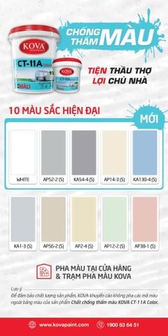 Bảo vệ công trình của bạn trước hiện tượng thấm nước và ẩm mốc không chỉ là yêu cầu về kỹ thuật mà còn là nhu cầu thẩm mỹ. Sản phẩm Chống Thấm Màu KOVA CT-11A Color chính là lựa chọn thông minh: vừa chống thấm hiệu quả, vừa mang lại màu sắc hiện đại, bề mặt sạch sẽ và bền đẹp theo thời gian.